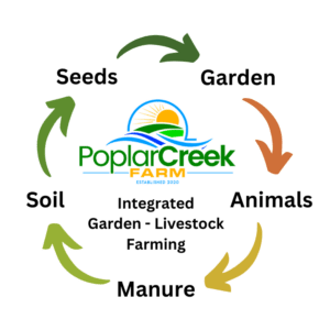 An 1100 sq ft organic garden keeps us busy on the farm year round and is a critical component of our Integrated Garden Livestock Farming Cycle. Organic materials from our compost piles are used to fill the raised garden beds. Pest control is handled through companion planting and occasional use of diatomaceous earth. Chemicals are never used. We occasionally experiment with different growing ideas such as trellising Zucchini, or various ways to plant and support tomatoes. And we are always looking to grow something new. The garden area is a bit of a science project as well as a place of respite. There is nothing healthier for the soul than growing something.